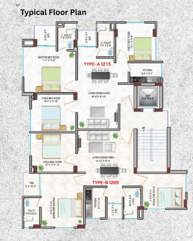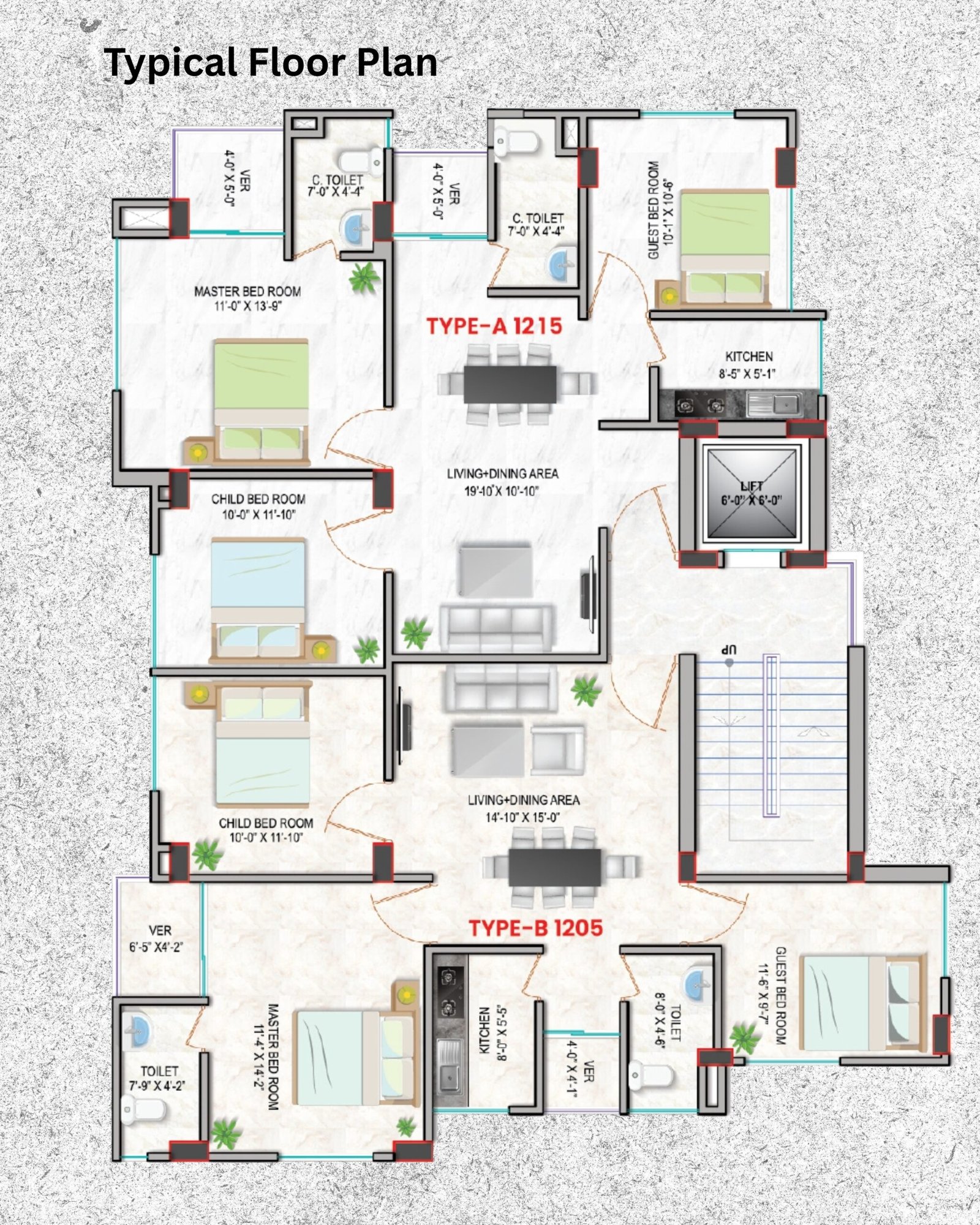 3 Beds, 02 Baths, 02 Ver, Living & Dining, Kitchen.
